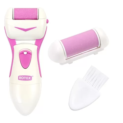 Працює від 2-х батарейок 1,5 V типу АА, 3Вт.2 ролика: ролик для видалення грубої шкіри + ролик для полірування. Обертання ролика на 360 градусів. Щіточка для чищення. Мішечок для зручного зберігання. Колір рожевий.