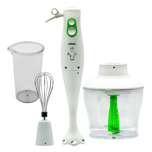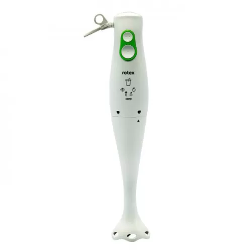 Power - 220-240V, 50Hz, 450W. 2 high-speed operation modes. Stainless steel blades. Plastic body. Detachable plastic shaft. Chopper 600 ml. Whisk. 800 ml measuring cup. Hang-up loop for easy mounting. White color. Warranty - 1 year.
